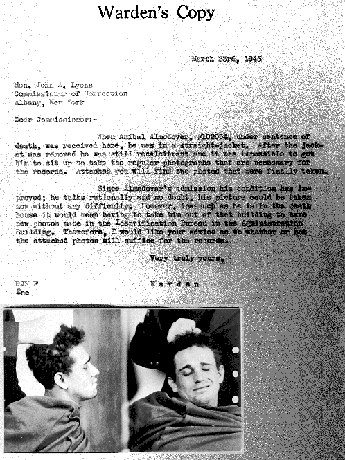 Sing Sing Warden's Letter re: Anibal Almodovar