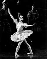 For example, the whole trouble starts because the parents of the newborn princess forgot to invite the fairy Carabosse to the christening. The black-gowned Carabosse, eyes flashing, fingernails out to there, is really really mad. She shows it by casting a spell on the baby, dooming her to die on her 16th birthday from pricking her finger on a spindle. Only the gentle power of the Lilac Fairy saves Princess Aurora, transforming death into a hundred-year sleep that will end when the prince comes to awaken her. So, is the moral of the tale: “Check your guest list carefully, or woe betide you?” French, too, is Prince Desire’s reaction when, after hacking through a hundred years’ growth of impenetrable brambles to reach the sleeping Aurora, he decides she is beautiful, even though her clothes are decidedly out of fashion. So, then, is the moral: make the woman, but a noble prince may overlook fashion errors?” Perrault himself may have smiled as he added his moral to the story. According to one paraphrased translation, it is: “Young ladies, take your time in choosing a husband—but, do not take a hundred years.” Well, City Ballet got through its first 43 years without a version of Sleeping Beauty. Under founding choreographer George Balanchine, the troupe made its mark dancing uncluttered, swift-moving ballets in which structure mattered more than story. Now, with Martins’ Sleeping Beauty in the repertory, City Ballet dancers, used to simple leotards and tights, have become courtiers in heavy, jewel-encrusted costumes, dancing in a language somewhat foreign to them. The production is rich in color, from the parade of silk-caped courtiers in the christening scene to the radiant gold of the final wedding scene. The scenery, too—a watercolor castle on a hill; a golden-brown autumnal park where the prince goes to hunt, and where the Lilac Fairy shows him a vision of Aurora; a magical bejeweled sailing ship that leads him to Aurora’s castle; a grand chandeliered ballroom for the wedding—is more lavish than anything in City Ballet’s book. Just looking at this ballet is an invitation to be enchanted. And the dancing? Martins claims that he did not choreograph, but only arranged City Ballet’s production of The Sleeping Beauty, choosing parts from the original choreography of Marius Petipa and splicing in George Balanchine’s lovely “Garland Waltz” for the celebration of Aurora’s 16th birthday, plus his own choreography for a quartet of Jewels who appear as wedding guests in the second act. The story, from christening to the prince’s approach to sleeping Aurora, is danced in a long first act. The second act is devoted to the huge wedding with a ballroom full of dancing guests, including many characters from other fairy tales. Certain passages are so well-known and so revered by balletomanes that they must be included in any production of Sleeping Beauty: The solo variations by the five fairy godmothers in the christening scene; the “Rose Adagio” in which the 16-year-old Aurora greets four suitors from the corners of the world; the dazzling fish dives in the wedding duet of Aurora and Prince Desire. City Ballet devoted the first week of its three-week SPAC season to Sleeping Beauty. In the performances I saw, Margaret Tracey began as a somewhat stilted Aurora, but soon found her way, dancing the role with the exuberance of a dewy girl, then the delicacy and seriousness of a bride. In the same role, Wendy Whelan danced with a commanding strength that was royal indeed. Of the two princes I saw, Nikolaj Hubbe was powerful and virtuosic, even adding a touch of razzle-dazzle to his presentation of Tracey in the final fish dive, while Damian Woetzel brought real emotion to the role, and dignity even to the flashiest variations. Outstanding in the wedding scene were newly promoted principal dancer Jenifer Ringer and Benjamin Millepied as Princess Florine and the Bluebird. Their leg beats were hummingbird swift, and Ringer seemed almost to fly. Edward Liang as Gold in the Jewels quartet performed crisp jumps with the super control that will make him a prince one day. Like Greek gods and goddesses controlling the fate of mortals, Carabosse and the Lilac Fairy preside over the action, contending throughout in a battle of good and evil. Helene Alexopoulos, substituting for Merrill Ashley, pointed with long fingers that quivered like dangerous live wires. Maria Kowroski as the Lilac Fairy was beautiful, but too mild. In her performances, Jennie Somogyi had more substance. Good wins, of course, and so does true love. When the King and Queen, Aurora’s parents, place their own crowns on the young couple’s heads in the final scene, we know that power has passed to a new generation, even as The Sleeping Beauty ballet has passed to this very contemporary company.